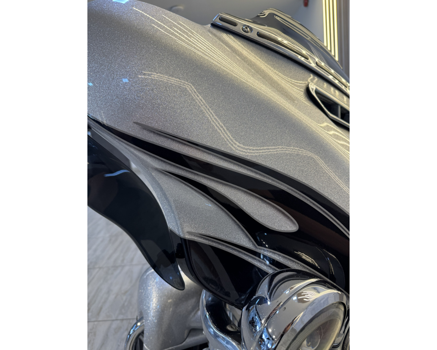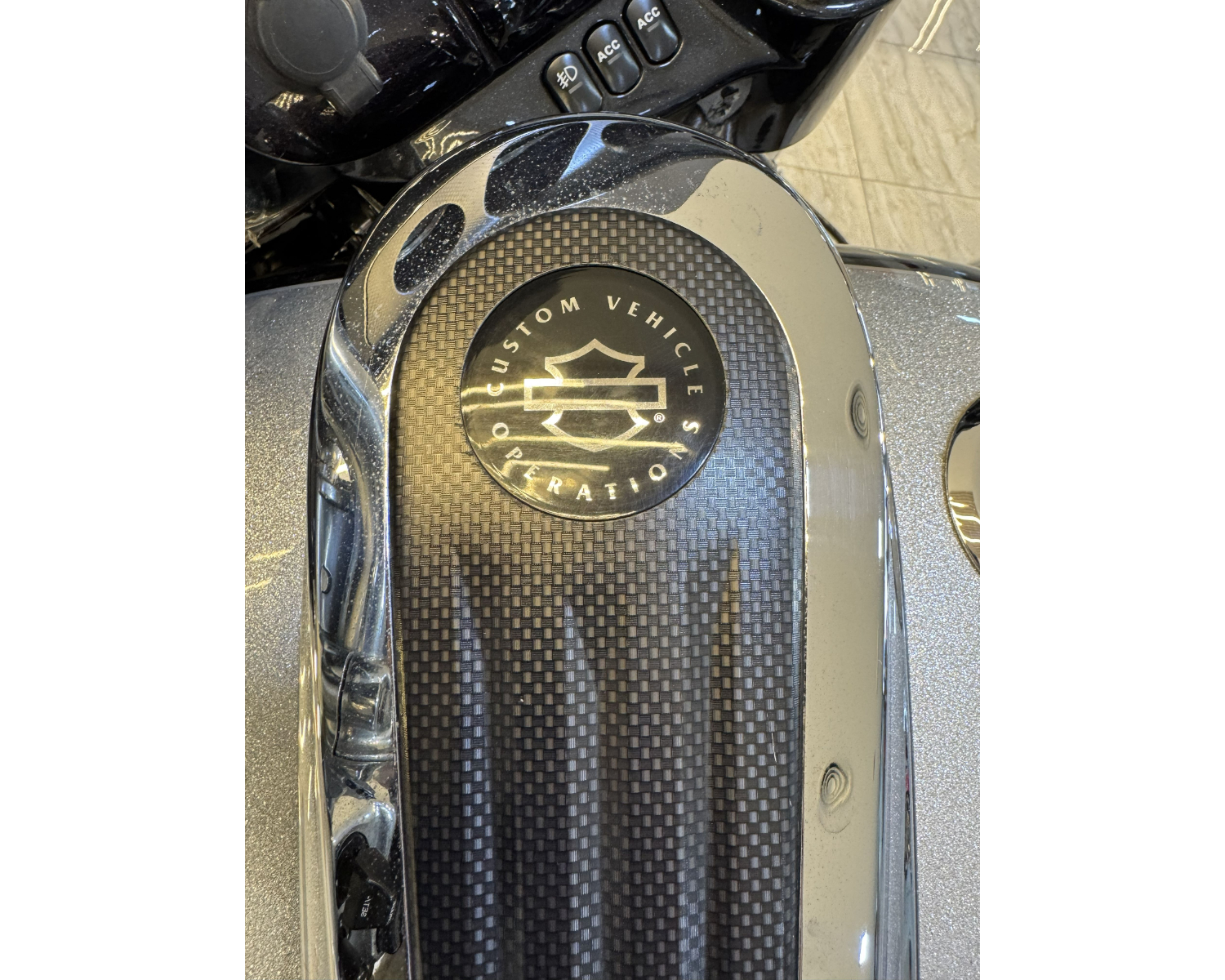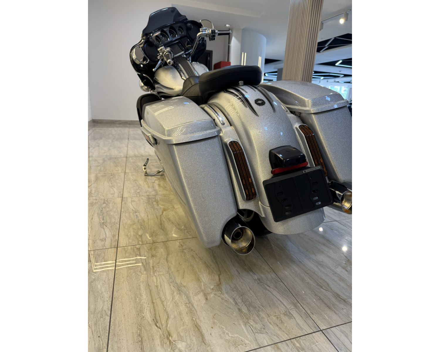 This CVO model stands out with its exclusive Silver/Black two-tone finish, custom paintwork, and premium chrome detailing. It comes equipped with high-performance suspension, a Boom! Box infotainment system, and advanced touring amenities that make long rides both thrilling and comfortable. Every detail — from the stitched leather seat to the distinctive CVO badging — showcases Harley-Davidson’s craftsmanship and attention to detail.