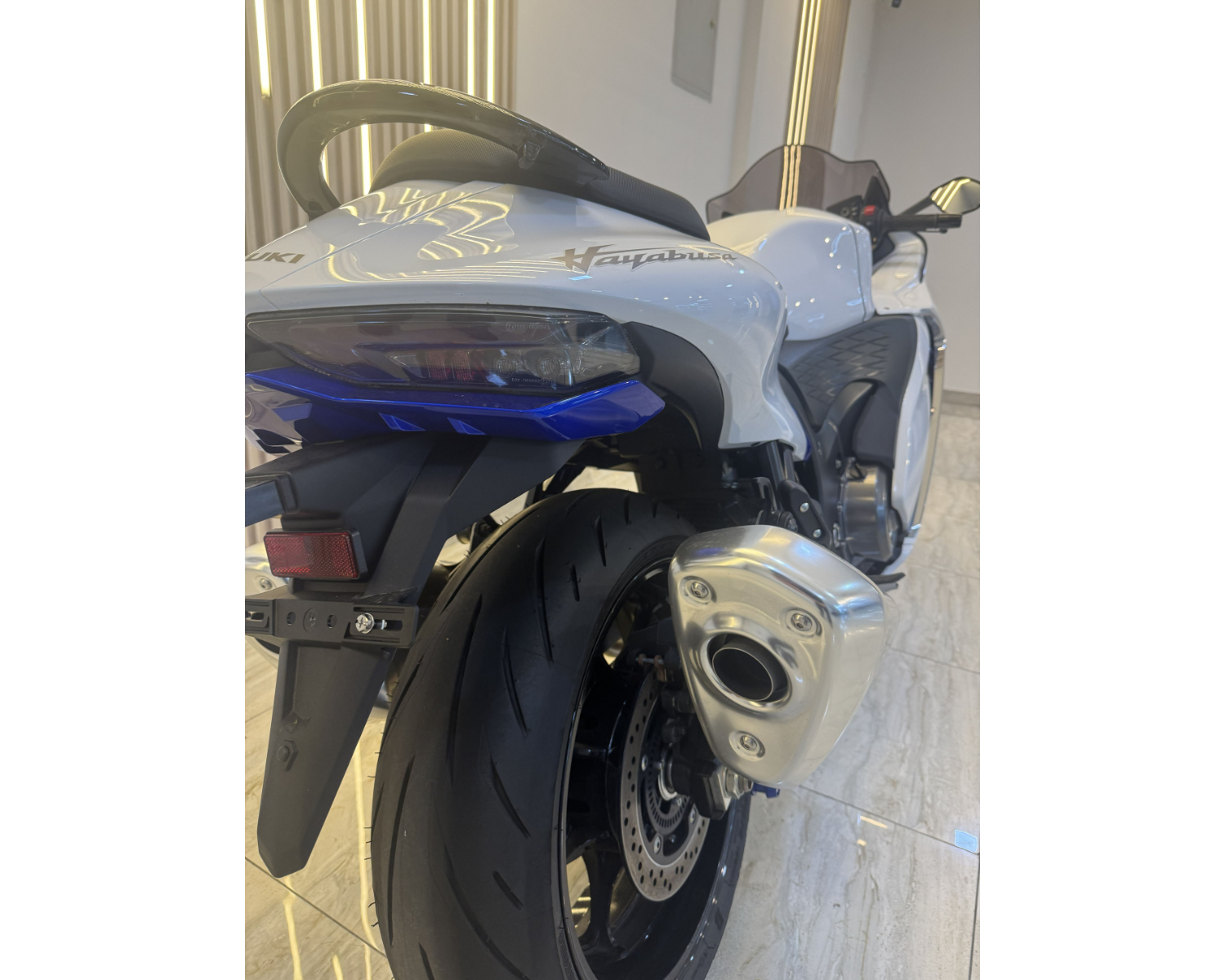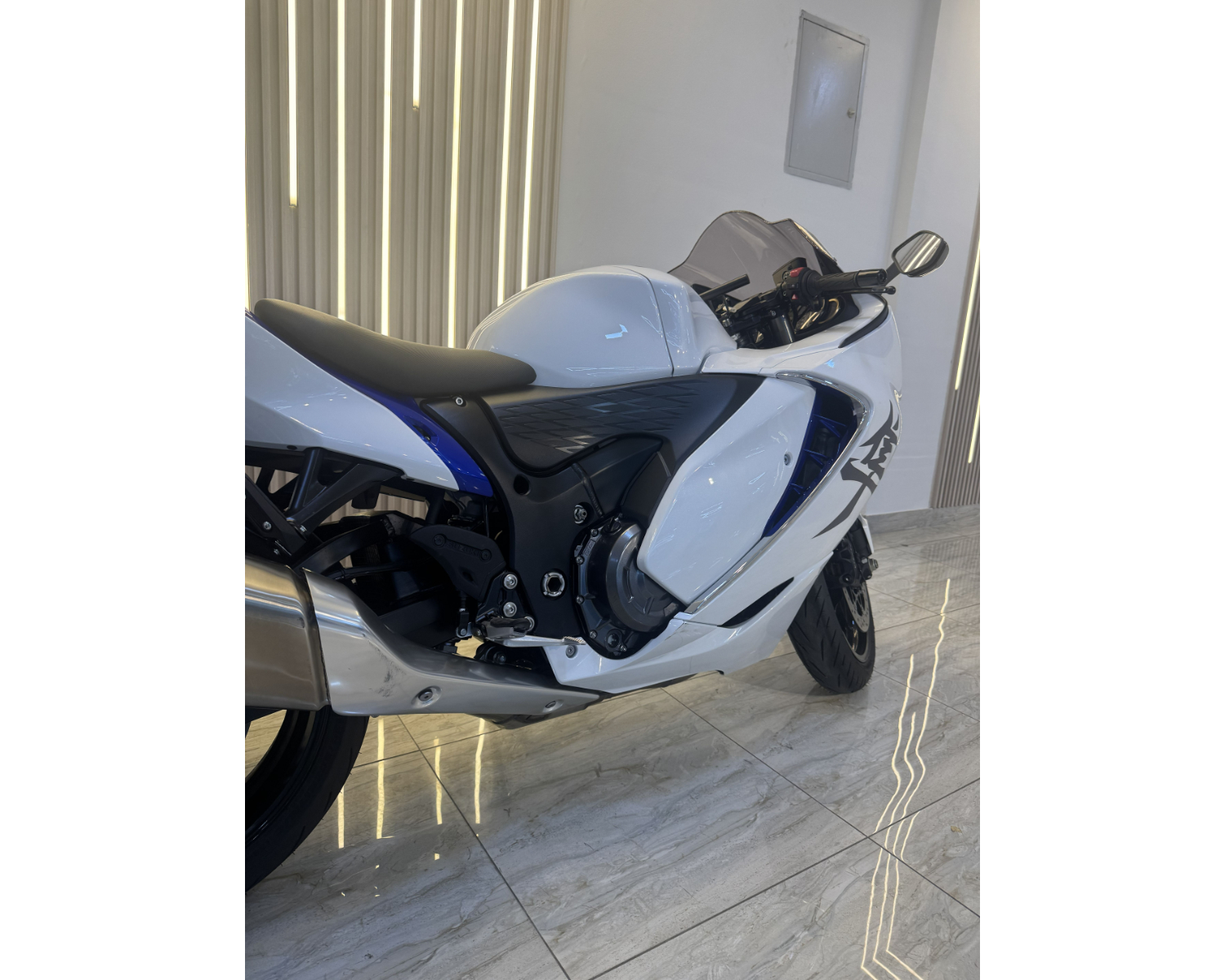 Finished in a stunning White/Blue colorway, this Hayabusa combines elegance and aggression like no other sportbike. With only 1,010 km on the odometer, it’s practically new and ready to unleash its full potential.