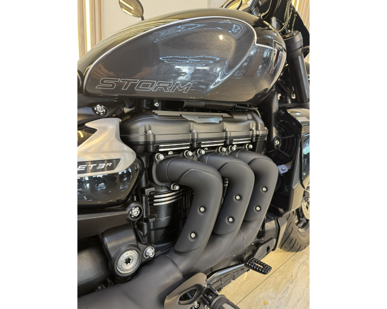 The 2025 Triumph Rocket 3R Storm is the latest evolution of Triumph’s legendary power cruiser — a motorcycle that blends raw torque, bold styling, and advanced engineering into one exhilarating package. Powered by the world’s largest production motorcycle engine, a 2,458cc inline three-cylinder, the Rocket 3R Storm delivers explosive acceleration and unmatched road presence, setting a new standard for modern performance cruisers.